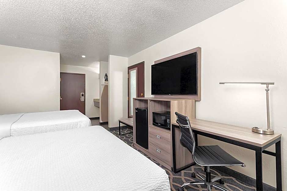 Room choices include a Queen Room, a Suite, a Deluxe Studio Suite, and a Studio Suite. The Queen Room comes with a Queen bed and sleeps up to 2 adults and 1 child. The Suite offers a King bed for 2 adults and 1 child. The 377-square-foot Deluxe Studio Suite also has a King bed for 2 adults and 1 child, while the 334-square-foot Studio Suite includes a King bed plus a sofa bed, accommodating 2 adults and 1 child.
